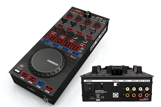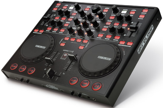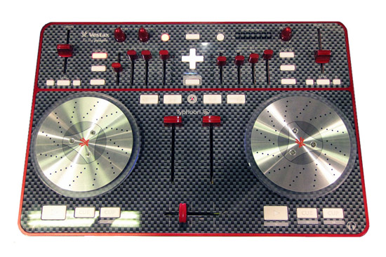 De Typhoon is een nieuwe midi en audio controller voor Traktor, voor zowel pc als mac, zal de VCI 100 vervangen, ziet er vrij spacy uit. De equalisers per kanaal zijn met faders, voor de rest een klassieke opstelling met micro ingang en koptelefoon uit, software meegeleverd. Dit is in feite de Traktor versie van Vestax Spin en werkt dus wel met PC