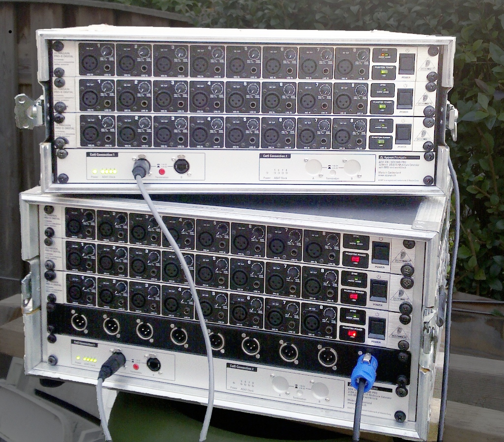 Voor 599 Euro incl. BTW heb je al de twee benodigde interfaces. Het volstaat om nog enkele adat pre-amps aan te schaffen om je systeem te vervolledigen. (vb. Behringer ADA8000 - 250 Euro incl.)