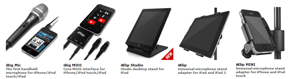 Er worden natuurlijk heel wat zaken gepresenteerd voor de iOS producten, maar deze iPhone/iPad/ipodtouch accessoires waren toch wel de moeite: op www.ikmultimedia.com vindt je alle accessoires die passen bij de aan te kopen Apps op de AppStore: een handmicro, een 2 kanaals mixer, een stompbox voor de gitaristen, een guitar interface, een midi interface en nog wat handige statieven en accesoires.