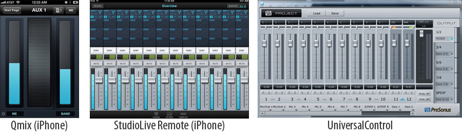 Qmix for iPhone en Studiolive Remote 1.2 voor iPad zijn gratis Apps om je Studiolive te bedienen. Gebruik de Universal Control 1.53/VSL om de verschillende iOS apparaten de nodige toestemmingen te geven om je Studiolive te bedienen.