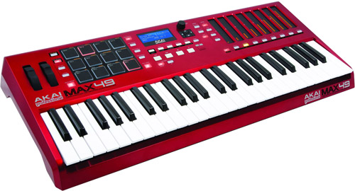 Tenslotte is er deze felrode MAX49: MIDI klavier uitgerust met 49 semi-weigted toetsen, 12 echte MPC pads en revolutionaire LED touch faders en ingebouwde step-sequencer.