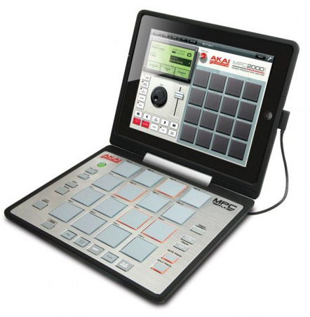 Een van de opvallendste nieuwe snufjes is deze MPC Fly van Akai. Het is een MPC controller voor je iPad. Dankzij de special iPad dock of "cradle" klik je je iPad gewoon vast op de MPC Fly zodat een soort netbook opstelling ontstaat. Je kan het geheel ook dichtklappen wat je iPad goed beschermt tijdens het transport en je kan hem ook plat gebruiken.