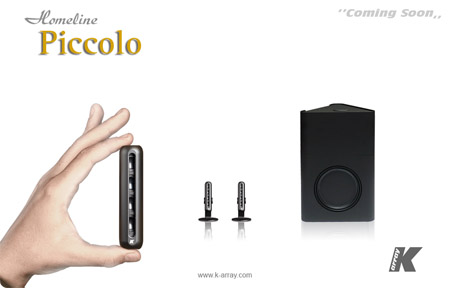 Ook K Array brengt een nieuwe set "computer speakers" uit: de Piccolo. Twee ultrakleine topjes (6cm hoog, 1 cm dik) en een basskast zo groot als een schoendoos. Later meer daarover, klinkt super.