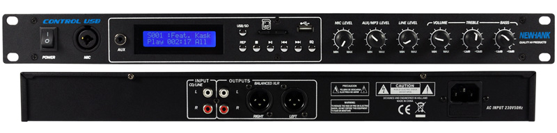 De Control USB is een basic 3-kanaals 19" rack mixer uitgerust met een USB/SD card speler. Kanaal 1 is toegewezen aan de micro input. Op kanaal 2 kunnen mp3 bestanden worden afgespeeld via UBB of SD-kaart of je kan er op de 3.5mm jack aansluiting ook bijvoorbeeld je iPhone of een andere bron op aansluiten. Kanaal 3 is dan weer voorbehouden voor een line bron zoals CD-speler, tuner,... deze sluit je aan op de achterkant met standaard RCA connectoren. Outputs zijn zowel gebalanceerd als ongebalanceerd en dus geschikt voor pro toepassingen